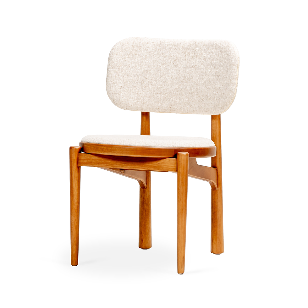 The Amaranto Chair, created by Larissa Diegoli, combines graceful and elegant design with a wooden structure, providing a solid and natural base. The seat and backrest, upholstered in fabric or leather, offer exceptional comfort. With soft lines and harmonious proportions, it is a statement of style and good taste, perfect for dining rooms, offices, or as a standout piece in any living space.