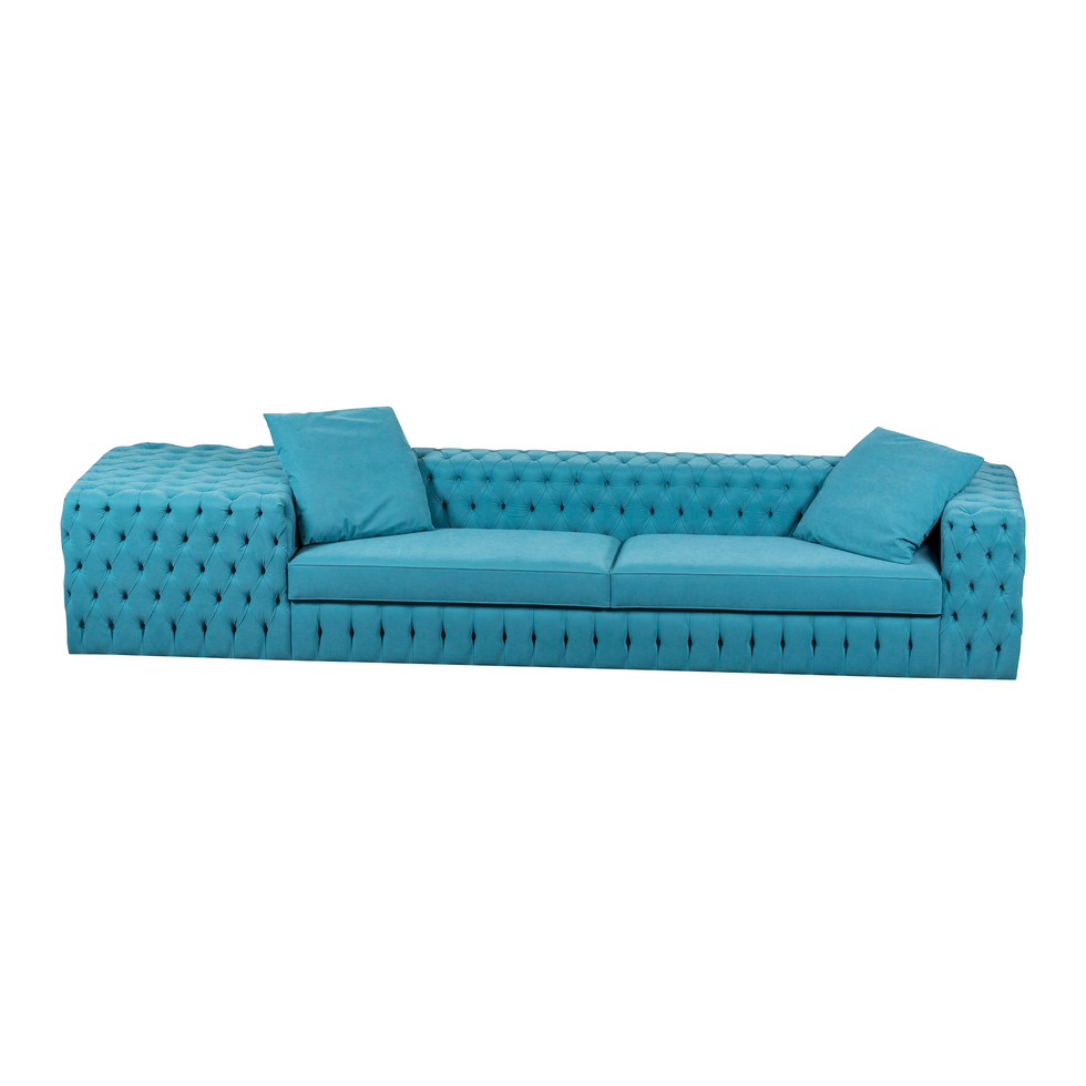 The Kansas sofa is a furniture piece that combines elegance and comfort in a distinctive design. Its structure, made of treated wood and marine-grade plywood, provides a solid and durable foundation. The soft foam seat, along with the upholstered seat and backrest, ensures a cozy relaxation experience. The tufted detail adds a touch of sophistication, standing out as a decorative element that enhances the design. More than just a place to unwind, the Kansas sofa is a statement piece that brings style and personality to any space, showcasing attention to detail and the quality of contemporary design.