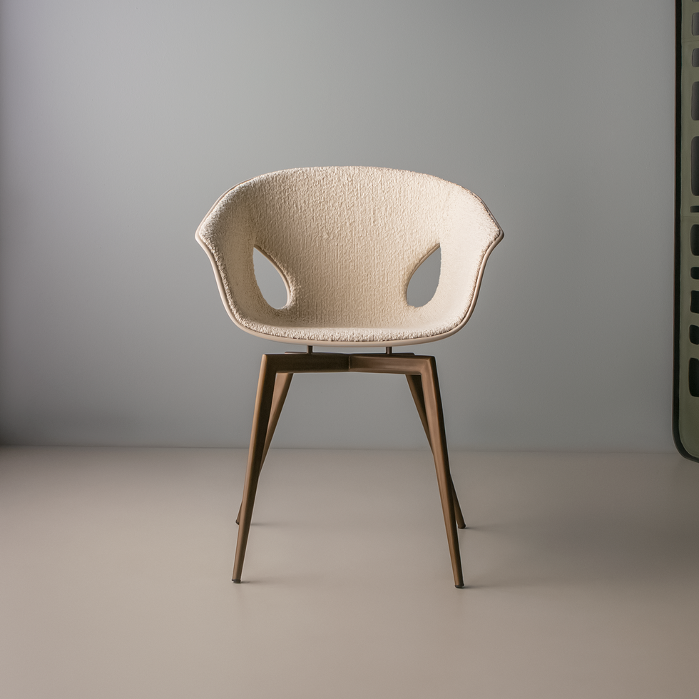 The Luuc Chair combines elegance and innovation with a metal and fiberglass structure, available in aged steel, laminate, or painted finishes. Its exterior upholstery in lacquer adds refinement, while the interior upholstery in leather or fabric provides exceptional comfort. The natural leather version, with divided sections and detailed stitching, enhances sophistication, making it a distinctive choice for modern and refined spaces.