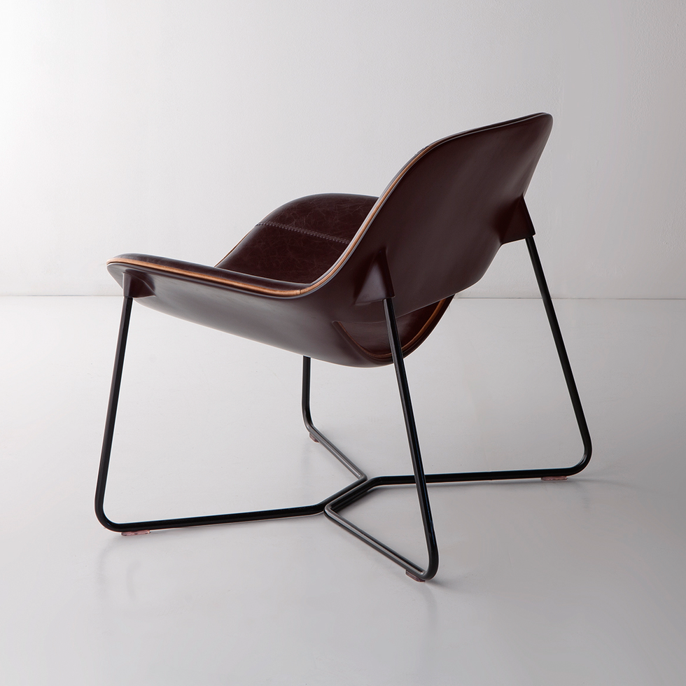 The Oxo Armchair is a modern and sophisticated piece. Its fiberglass structure, available in paint or aged steel finishes, offers lightness and durability. The seat and back are upholstered in a variety of fabrics and leathers, including plain fabric, bouclé, wool, Tropicália, Wish, natural leather, and premium leather. The detail, with or without piping in the options of natural or premium leather, adds a refined finish.