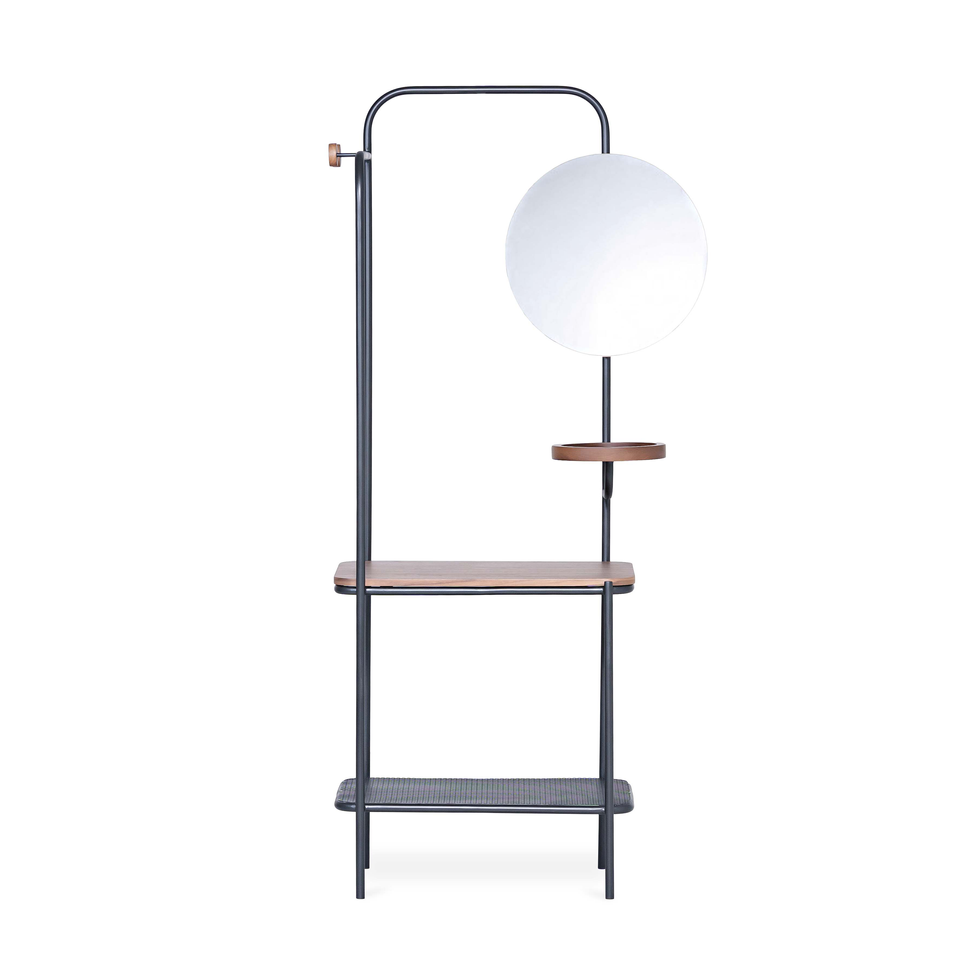 The Pate Coat Rack is a functional and elegant piece, perfect for those seeking practicality and style. Its laminated MDF top offers durability and a modern finish, while the carbon steel base provides strength and a contemporary touch. The integrated mirror adds sophistication and versatility, making the Pate Coat Rack ideal for any space that seeks functionality and refined design.