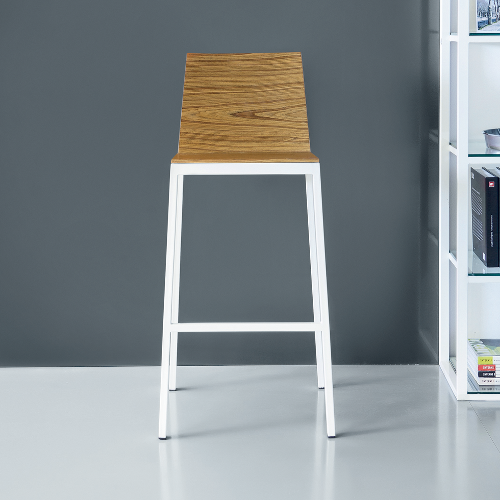 The Toy Stool combines contemporary design and comfort with a metal structure in laminate or painted finishes, offering durability and modern aesthetics. The upholstered seat and backrest, available in laminate, lacquer, fabric, or leather, ensure an elegant experience. The natural leather version, with stitched details, adds exclusivity. Ideal for bars or sophisticated dining areas, it is a striking piece full of style.